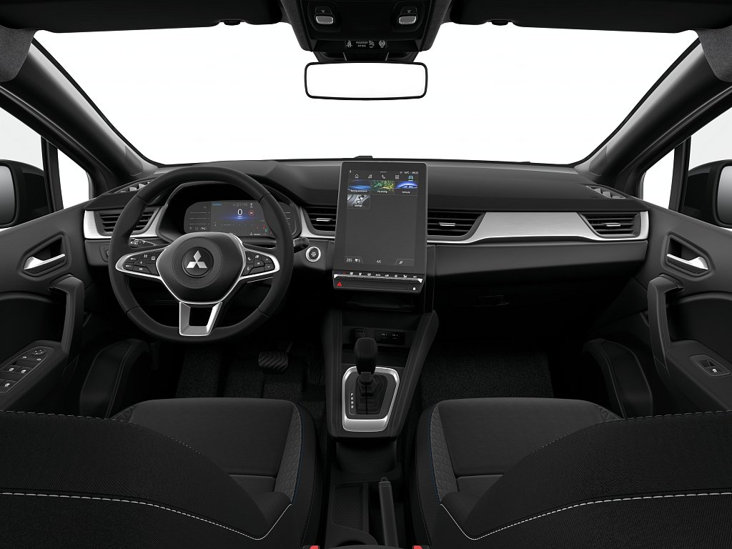 Čelní airbagy řidiče a spolujezdce (x2), spínač deaktivace airbagu spolujezdce, Boční airbagy řidiče a spolujezdce (x2), hlavové (okenní) airbagy vpředu a vzadu (x2), Antiblokovací brzdový systém (ABS), Elektronický systém rozdělení brzdného účinku (EBD), Nouzový brzdový asistent (EBA), Systém signalizace nouzového brzdění (ESS), Systém aktivního řízení stability (ASC), Systém elektronického řízení trakce (TCL), Asistent rozjezdu do kopce (HSA), Upozornění na dodržování bezpečného odstupu, Systém monitorování a podpory udržování jízdního pruhu (LDW), Aktivní systém udržení v jízdním pruhu (LKA), Sada pro nouzovou opravu pneumatik, Elektronický imobilizér, Dětská pojistka zámků zadních dveří, 3bodový bezpečnostní pás ELR na předních sedadlech s předpínačem a omezovačem zátěže (x2), 3bodový bezpečnostní pás ELR na zadních sedadlech (x3) s předpínačem a omezovačem zátěže (x2), Výškově nastavitelné horní úchyty bezpečnostních pásů na předních sedadlech (x2), Přední LED světlomety s manuálním nastavením sklonu, LED denní světla, Zadní kombinovaná LED světla, Senzor automatického rozsvěcení světel, Automatická dálková světla (AHB), Třetí zadní brzdové LED světlo, Přední směrová světla integrovaná v předních světlometech, Zadní mlhové světlo integrované v nárazníku, Komfortní funkce světel "Coming home" a "Welcome light", Ocelové disky kol "flex" 17" + pneumatiky 215/60 R17, Elektricky ovládaná a vyhřívaná vnější zpětná zrcátka v leskle černé barvě s ukazateli směru, Podélné střešní ližiny stříbrné, Parkovací senzory vzadu (x4), Parkovací kamera vzadu s projekcí na displeji audiosystému, Tónovaná skla, přední sklo bezpečnostní laminované, zadní pevnostní temperované, Zatmavená zadní boční skla a zatmavené zadní sklo, Střešní anténa typu Shark fin, Přední a zadní nárazník v barvě karoserie, Kliky dveří v barvě karoserie, Prostřední boční dveřní sloupek v černé barvě, Leskle černá mřížka chladiče s chromovými akcenty, Ochranné spodní lemy dveří černé, Lemy bočních oken černé, Plastové lemy blatníků (černé), Syntetickou kůží obšitý 3ramenný multifunkční volant, Posuvná středová loketní opěrka vpředu s úložným prostorem, Stříbrné dekory palubní desky, Chromované vnitřní kliky dveří, Držáky nápojů vpředu ve středové konzole (x2), Funkce dvojitého dna v zavazadlovém prostoru, Kryt zavazadlového prostoru, Osvětlení přední části interiéru, Osvětlení zadní části interiéru, Sluneční clona u řidiče a spolujezdce s kosmetickým zrcátkem a držákem lístků, Osvětlená odkládací schránka na straně spolujezdce, Osvětlení zavazadlového prostoru, Výškově nastavitelné sedadlo řidiče, Výškově nastavitelné opěrky hlavy na předních sedadlech (x2), Výškově nastavitelné opěrky hlavy na zadních sedadlech (x3), Ukotvení dětské bezpečnostní sedačky ISOFIX (x1 na místě spolujezdce, x2 na zadních sedadlech), Centrální zamykání dveří s dálkovým ovládáním a dvěma ovladači, Inteligentní systém bezklíčového ovládání centrálního zamykání s tlačítkem START/STOP, Elektrické ovládání předních a zadních oken s funkcí AUTO a ochranou proti přivření, Elektrický posilovač řízení (EPS) s variabilním účinkem, Výškově a podélně nastavitelný volant, Dešťový senzor, Systém automatického zastavení a nastartování motoru (AS&G), Komfortní funkce ostřikovače předního skla, Elektronický zámek pátých dveří s dotykovým ovládáním, Palubní počítač, ukazatel vnější teploty, Ovládání audiosystému pod volantem, 6 reproduktorů, Plně digitální přístrojový panel se 7" TFT displejem, Tlačítko pro nouzové přivolání pomoci (E-Call), Technologie pohonu mild-hybrid 12V, Systém pro analýzu pozornosti řidiče, Systém předcházení a zmírňování následků čelního nárazu s detekcí chodců a cyklistů (FCM), Multikolizní brzda, Aktivní systém pro nouzové udržení v jízdním pruhu (ELKA), Systém rozpoznávání dopravních značek upravujících rychlost (TSR) s inteligentním asistentem pro dodržení povolené rychlosti, Spodní kryt předního nárazníku leskle černý, Spodní kryt zadního nárazníku leskle černý, Zadní střešní spoiler, Přihrádky s držáky nápojů ve výplních předních a zadních dveří, Čerrné přední sloupky, Tmavěšedé čalounění stropu, Látkové čalounění sedadel černé / šedé, Vyhřívaná přední sedadla (2 stupně teploty), Sedadla ve druhé řadě dělená v poměru 60:40, Posuvná lavice zadního sedadla (160 mm), Automatická klimatizace s pylovým filtrem a filtrem s aktivním uhlím, Tlačítko ECO (asistent pro hospodárnou jízdu), Elektrická zásuvka 12V (v přední části středové konzoly) (x1), Audiosystém 10,4", podpora bezdrátového Android Auto™ a CarPlay®, Bluetooth®, autorádio AM/FM/DAB (SDA), Automatické aktualizace audiosystému, Komunikace s vozidlem a ovládání některých jeho funkcí prostřednictvím mobilní aplikace My Mitsubishi, Datový a nabíjecí vstup USB-C na předním panelu (x2), Palubní deska s měkkým obložením, Výdechy ventilace pro zadní cestující (pod předními sedadly a v zadní části středového tunelu), Systém kontroly tlaku v pneumatikách (TPMS), Omezovač rychlosti s ovládáním na volantu, Tempomat s ovládáním na volantu